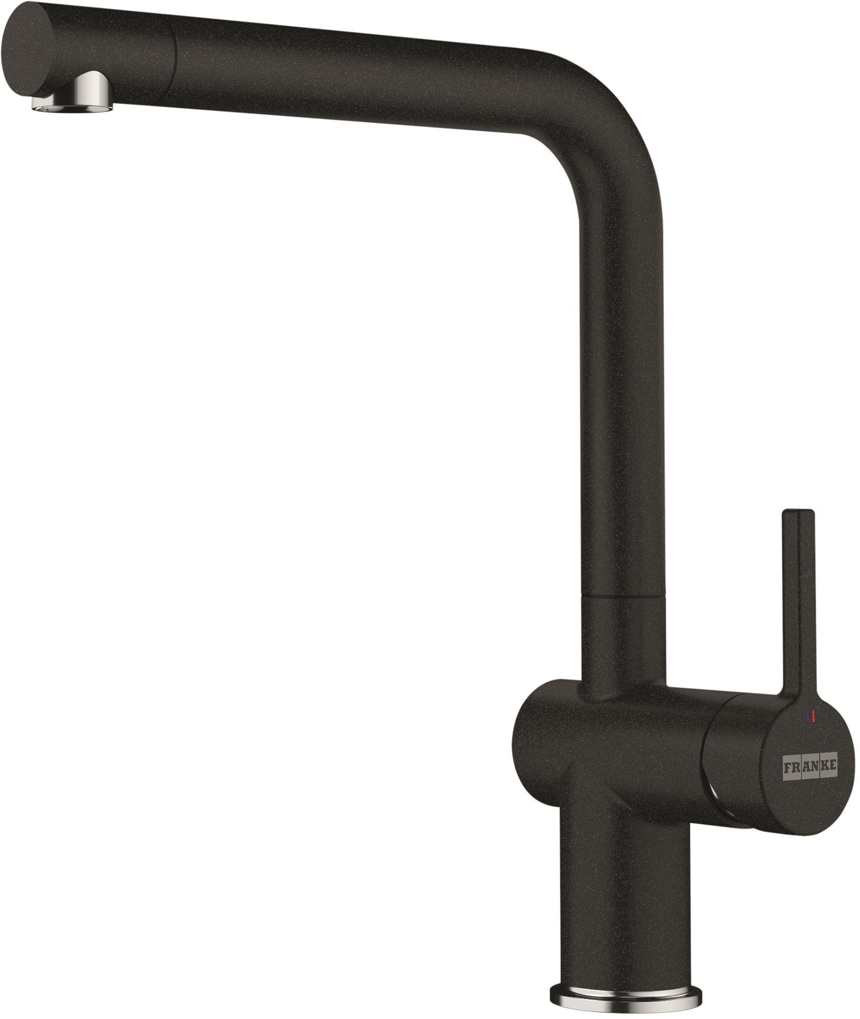 Franke Active köögisegisti. Segistil on 180° pööratav L-tila ja küljehoovaga juhtimine. Komplektis 450 mm pikkused veevarustusvoolikud 3/8" ühendustega. Kroomitud detailidega musta (Onyx) värvi, messingist.