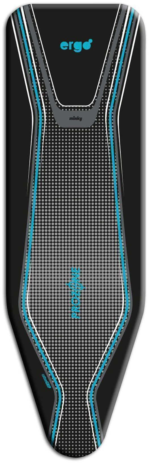 Minky Ergo asenduskate on spetsiaalselt loodud Minky Ergo triikimislaudadele ning sobib laudadele, mille suurus on kuni 122 x 38 cm. Kate kasutab Prozone-tehnoloogiat, mis kiirendab kortsude eemaldamist, muutes triikimisprotsessi tõhusamaks. Tugev kumm võimaldab katet lihtsalt ja kiiresti paigaldada, tagades kindla ja stabiilse kinnituse.