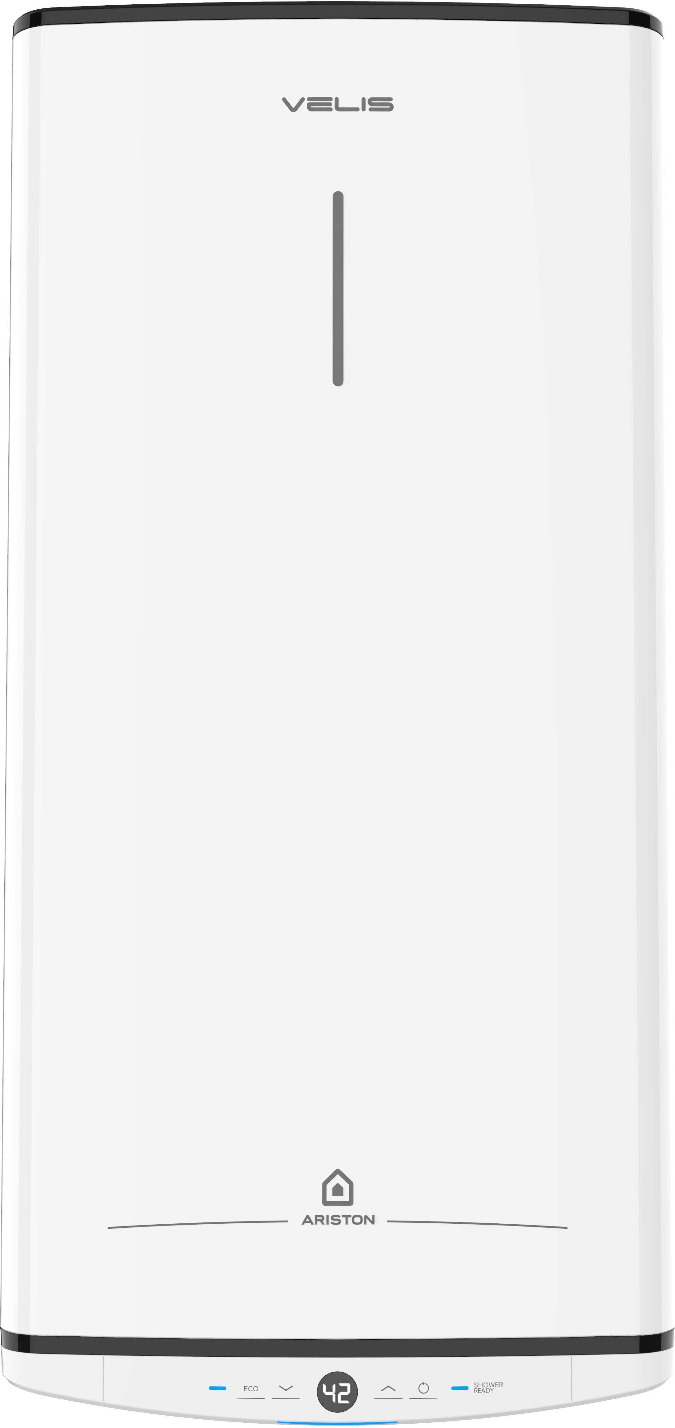 ARISTON VELIS PRO 100 EU on Aristoni uusim elektriline veesoojendi, pakkudes 100 liitrist väljavoolu mahtu ja maksimaalset temperatuuri 80 °C. Esimene soe dušš on valmis 50 minutiga! Maksimaalne rõhk on 8 baari ja tarbib 1,5 kW energiat. Boileril on B energiatõhususe klass, mis viitab energiatarbimise vähendamise funktsionaalsusele. Üks silmapaistvamaid omadusi on Twin Tank Technology, mis võimaldab kuni 16% rohkem sooja vee kättesaadavust võrreldes traditsiooniliste mudelitega. Ultraõhuke disain, mille sügavus on vaid 27 cm, teeb sellest ideaalse lahenduse paigaldamiseks, kus ruum on piiratud. Soojendi nutikad funktsioonid suurendavad mugavust ja ohutust. See on varustatud innovatiivse ECO EVO funktsiooniga, mis õpib kasutaja harjumusi, et paremini hallata veesoojendi kasutamist ja vähendada kulusid kuni 14%. SHOWER READY märguanne teavitab kasutajaid, kui soe vesi on saadaval, ning täiendavad turvameetmed, nagu antilegionella funktsioon ja ABS turvasüsteemid, pakuvad lisakaitset. Velis Pro mudeli siseanum on ka kaetud titaanemailiga, mis tagab suurepärase korrosioonikindluse, lisaks on ka sellel mudelil suurem magnesiumanood, mis pakub tõhusamat kaitset korrosioonitegurite eest. Seadmel on modernne ja stiilne disain, mille jooned ja elegantne viimistlus loovad esteetiliselt meeldiva ja mitmekülgse toote. LCD-ekraan boileri alumises osas võimaldab mugavalt jälgida temperatuuri ja muid seadistusi.