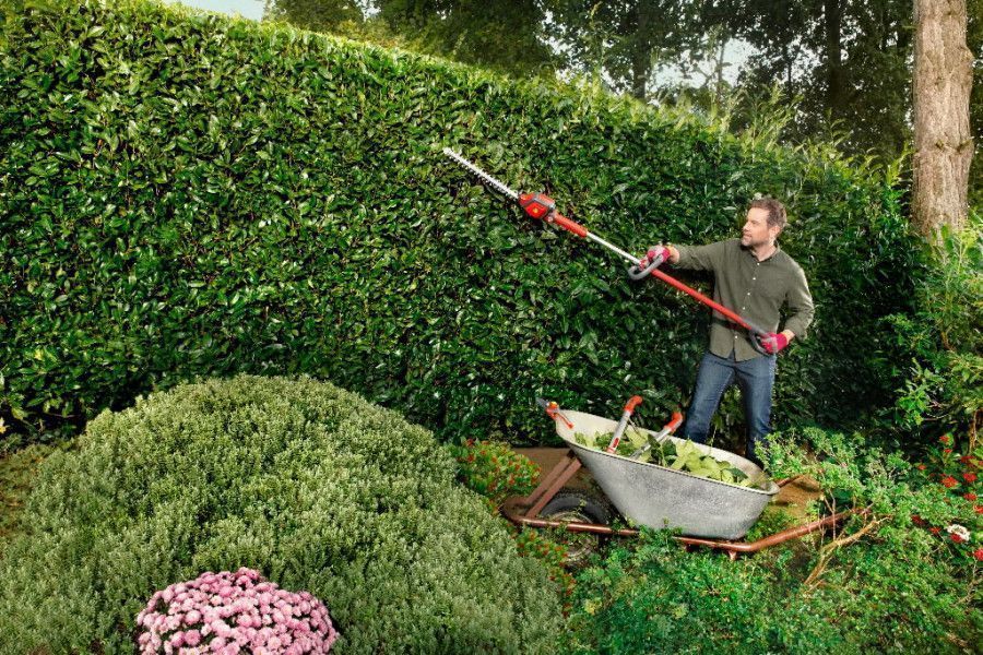 Pööratav pea võimaldab mugavalt hekki pügada ka ilma redelita