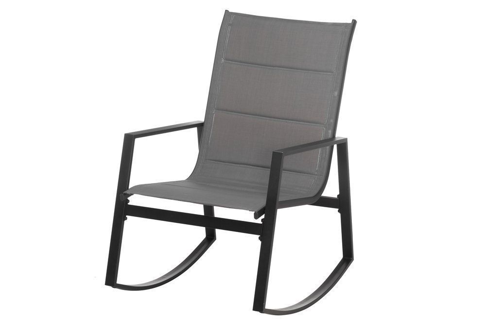 4Living kiiktool Malaga, millel on vastupidav terasraam ja istumiskate textilene kangast (PVC-kattega polüesterkangas). Tooli maksimaalne kandevõime on 120 kg ja värvus hall.