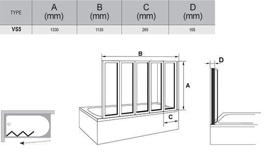 VANNISEIN RAVAK VS5 105X140CM VALGE, RAIN KLAAS