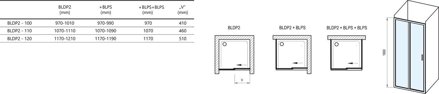 DUŠIUKS RAVAK BLIX BLDP2-110, 110X190CM, SATIIN