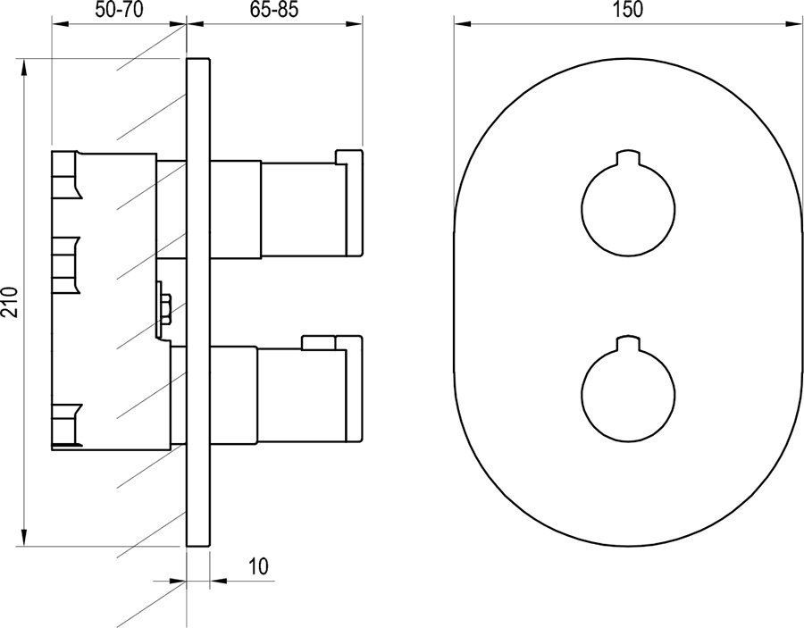 Termostaatiline segisti peidetud paigalduseks Chrome - kolmerežiimiline, mõeldud kasutamiseks R-box Multi jaoks RB 071.50.