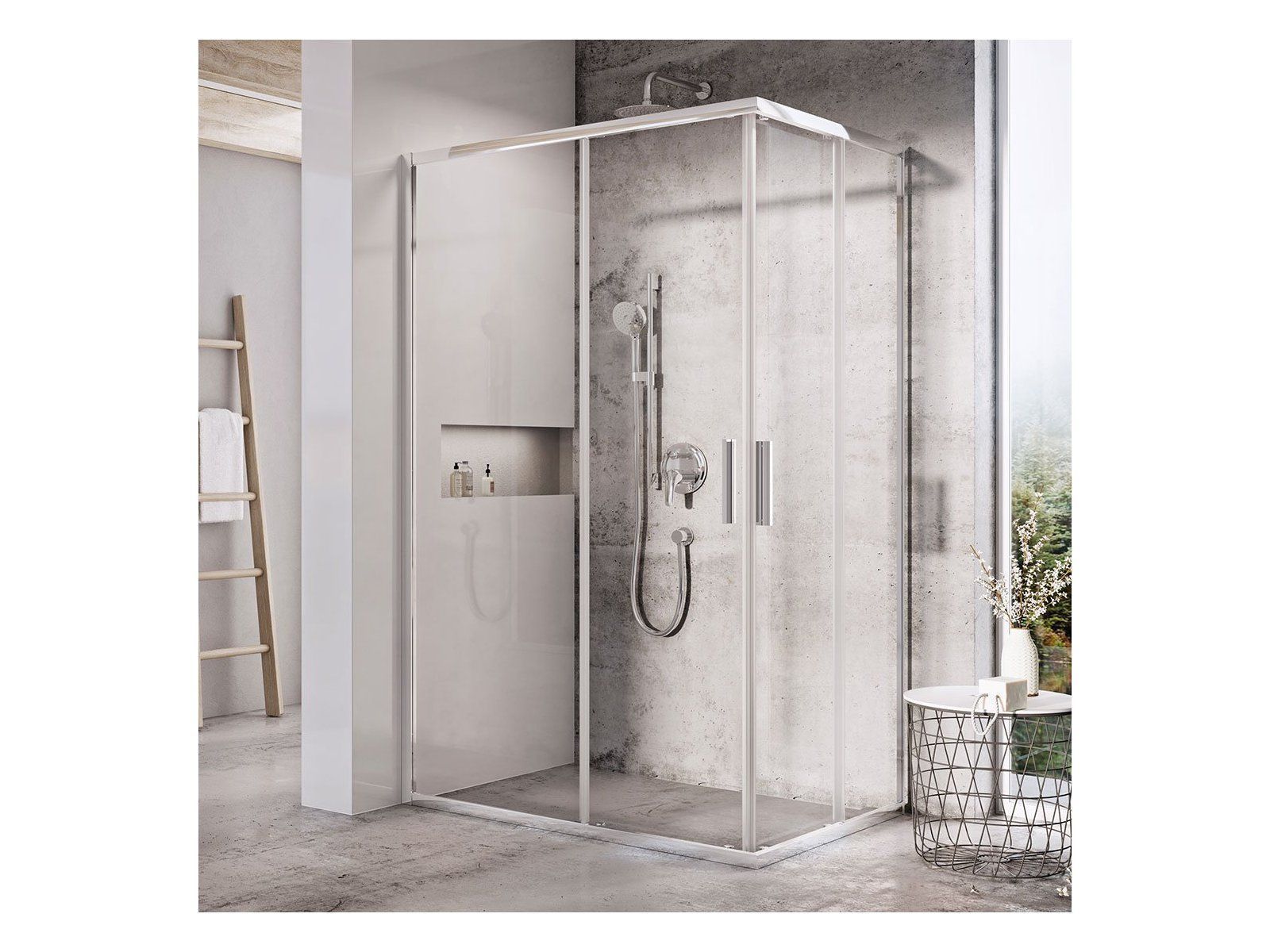 Paigaldatakse plaaditud vannitoa nurka RAVAK ANGELA, PERSEUS, PERSEUS PRO, PERSEUS PRO FLAT, PERSEUS PRO CHROME, GIGANT PRO, GIGANT PRO FLAT, GIGANT PRO CHROME alusvannidele või otse põrandale sisseehitatud dušikanaliga.