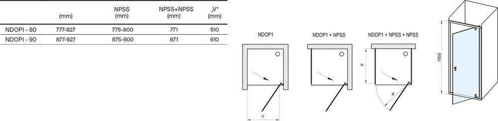 Kahe fikseeritud NPSS tüüpi seinaga kombineerimine võimaldab luua "П" - kujulise dušinurga. Reguleerimisprofiil NNPS võimaldab toodet laiendada 20 mm võrra, mis annab dušiustele võimaluse ideaalselt kohanduda kuni 4 cm ehituslike ebatasasustega mõlemal küljel.