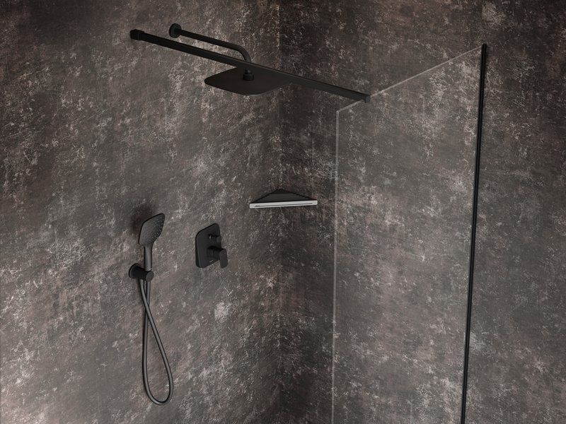 Riiuli pind on perforeeritud, et vesi ei jääks pinnale, kuid samas tagaks paigutatud esemete stabiilsuse. Riiuli keskel on kinnitatud kolm alumist konksu, millele saab riputada isegi raskemaid esemeid, näiteks fööni. Kahe või enama riiuli ühendamisel saavutate tõhusa komplekti täiendava hoiualaga. Soovitame kombineerida sirge riiuliga Slim S.