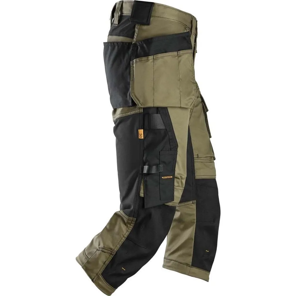 Snickers Workwear AllroundWork stretš-piraadipüksid ripptaskutega. Stretškangast valmistatud kitsalõikelised piraadipüksid on loodud selleks, et tagada sinu igapäevane töömugavus. Eelpainutatud sääred ja materjalivalik tagavad liikumisvabaduse, CORDURA®st venivad põlvetugevdused ja säärte otsad annavad vastupidavuse ning KneeGuard™ Pro süsteem kaitseb põlvi. Reguleeritavad sääreotsad tagavad maksimaalse mugavuse ja istuvuse ning ripptaskutes on vajalikud esemed alati käepärast.