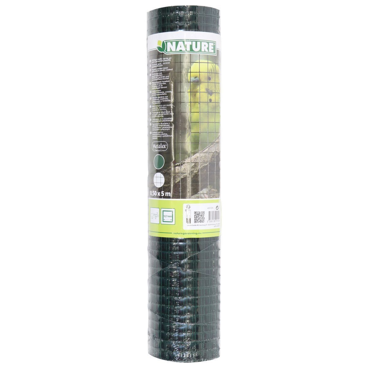 Metallvõrk tsingitud plast kattega roheline Metalex® - silm 12,7 x 12,7 mm. Võrgu mõõtmed on 50 cm x 5 m.