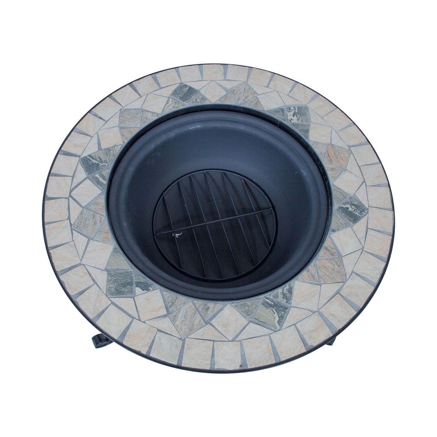 Tulease MOSAIC 60x60xH45cm, beež. Nutika disainiga tulease on ideaalne hubasteks lõkkeõhtuteks ja samas sobib hästi igapäevaseks kasutamiseks aialauana. Dekoratiivse mosaiikplaadi keskel on 38cm läbimõõduga ava tulekausi jaoks. Kui tuld ei tehta saab alumisele tasapinnale paigutatud mosaiikplaadiga katta tulekausi ava ning moodustub terviklik lauaplaat. Samal ajal saab terasvõrgust tulekausi katet hoiustada alumisel tasapinnal. Tuleaseme raam on valmistatud metallist ja viimistletud musta pulbervärviga. Terasest tulekauss on värvitud kuumuskindla värviga. Tulekausi sügavus on 15cm. Kausi põhjas on metallrest. Tulekausi kate on valmistatud terasvõrgust. Roop kuulub komplekti.