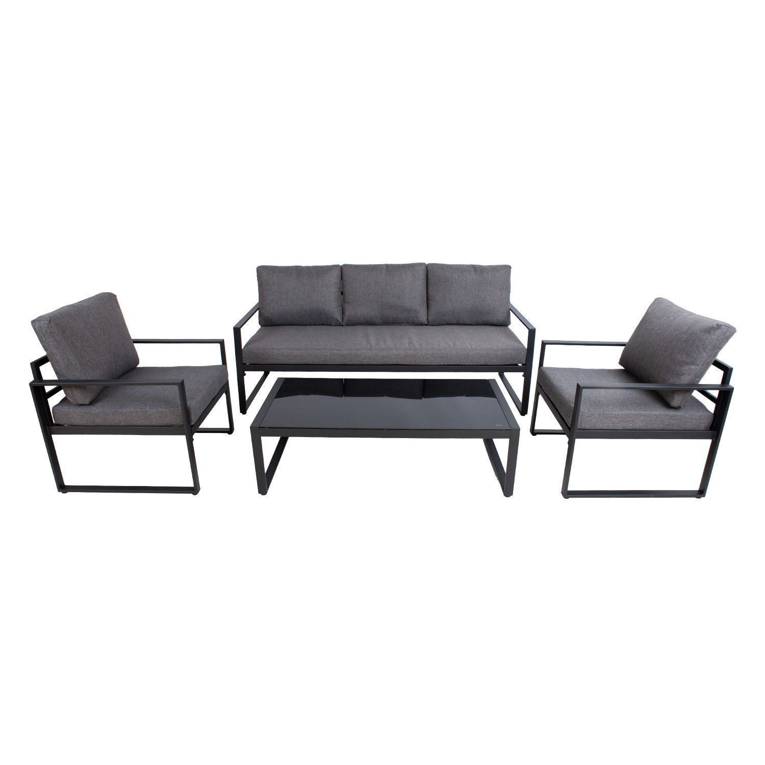 Aiamööblikomplekt LEIPZIG laud, diivan ja 2 tooli. Komplekti kõigi osade põhikonstruktsioon on valmistatud terasest ja viimistletud tumehalli pulbervärviga. Diivani- ja toolipadjad kuuluvad komplekti. Padjakatted on valmistatud hallist polüesterkangast. Laua mõõdud on 60x120xH35cm, lauaplaat: 5mm tumehall karastatud klaas. Diivani mõõdud on 180x68xH65cm, tooli mõõdud on 65x68xH65cm. Toode on muutlikes ilmastikutingimustes hästi vastupidav ja lihtsalt hooldatav. Kaitset ilmastikuolude eest vajavad ainult padjad. Välitingimustes kasutatava mööbli eluea pikendamiseks soovitame kasutada välimööbli katteid. HOIUSTAMINE: suvehooaja lõppedes soovitame aiamööblit hoiustada siseruumides. Puhastage ja kuivatage mööbel enne hoiule panekut. Kasutage hoiustamiseks kuiva ning hea ventilatsiooniga ruumi.