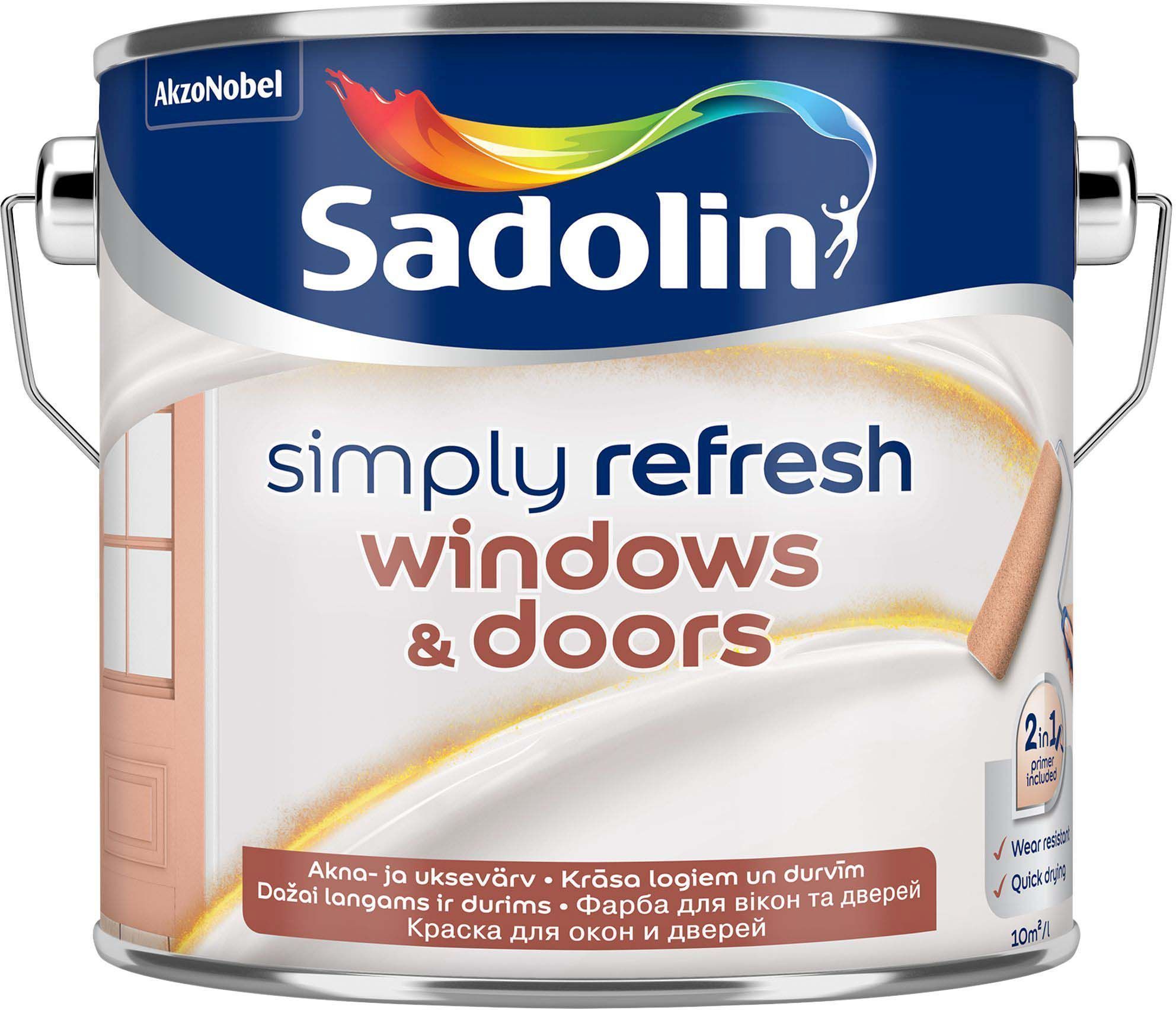 Sadolin Simply Refresh 2in1 tehnoloogia - krunt ja pinnavärv koos akna ja uksevärv. Väga hea nake puit-, metall-, aluminium-, pvc pindadega. Värvitud pind on kulumiskindel, kuivab kiiresti, vähese lõhnaga. Sobib uste, akende, mööblile, radiaatorite ja köögimööbli värvimiseks.