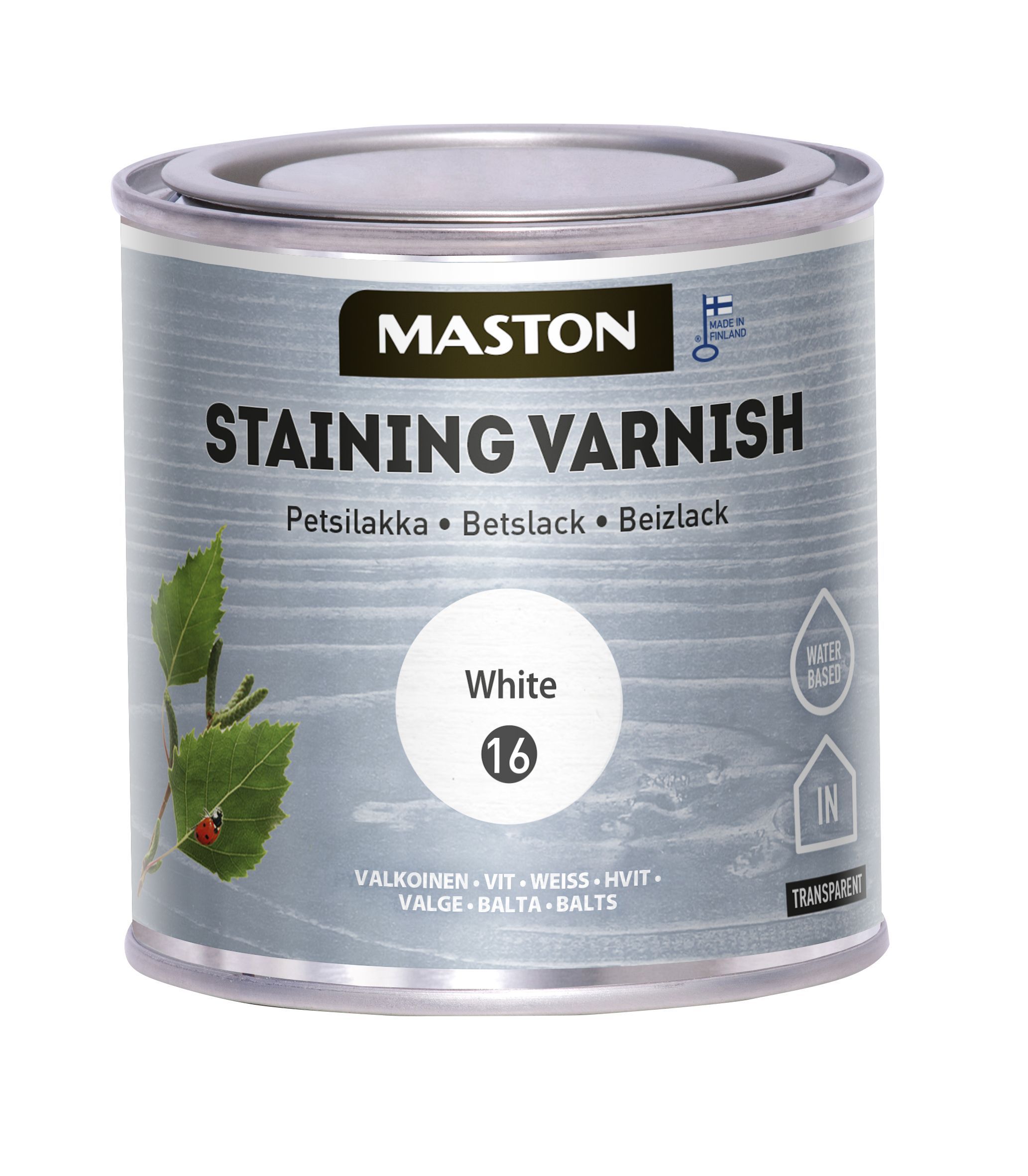 MASTON veepõhine peits-lakk töötlemata ja eelnevalt töödeldud puitpindade töötlemiseks ja uuendamiseks. Läbipaistev, valguskindel pind. AINULT SISERUUMIDES KASUTAMISEKS. Geelilaadne. Eeltöötlus: Lihvige pind liivapaberiga ja puhastage lihvimistolmust, õlist, rasvast ja muust mustusest. Töötamine: Enne kasutamist sega lakk hoolikalt läbi. Pintselda õhukeselt puidusüü suunas. Töötlemata pindu ja vajadusel eelnevalt lakitud pindu töödeldakse 2 korda. Pärast esimest töötlust laske pinnal täielikult kuivada ja tehke vahelihvimine liivapaberiga nr 240. Eemaldage lihvimistolm ja tehke teine töötlus. Madalaim töötemperatuur: +8 °C.