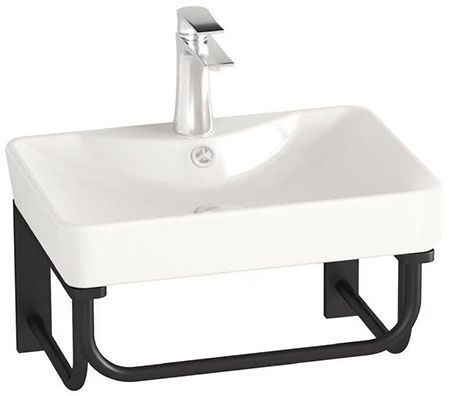 Valamu Luca seinaraamil 410 x 290 mm. Valamu ja riputatav alus koos käterätikuhoidjaga valamu all.