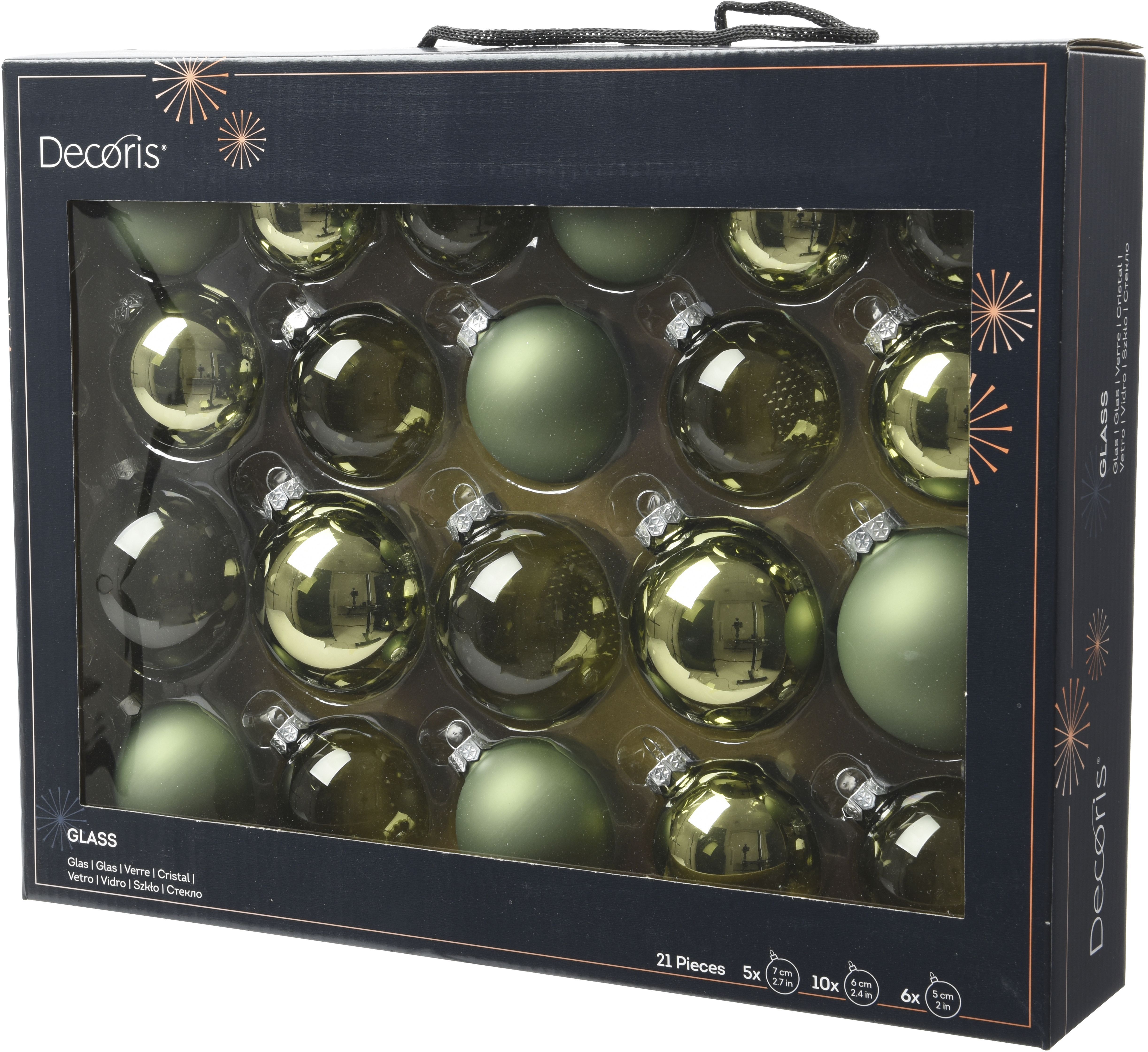 JÕULUKUULID Ø7CM KLAAS ROHELINE 21TK PAKIS